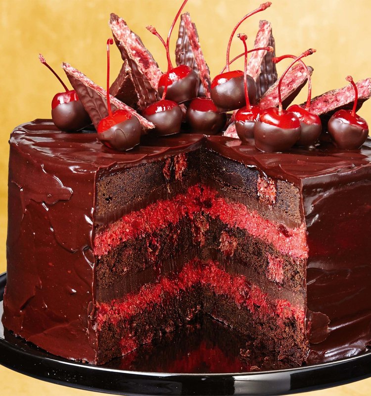 Savor the delightful fusion of flavors with our Cherry-Filled Chocolate Cake! Each slice reveals layers of moist chocolate cake enveloping a luscious cherry filling, creating a perfect harmony of rich chocolate and tangy-sweet cherries. Topped with smooth chocolate frosting and garnished with fresh cherries, it’s a decadent dessert that will tantalize your taste buds and leave you craving more. Perfect for celebrating special occasions or simply indulging in a luxurious treat.