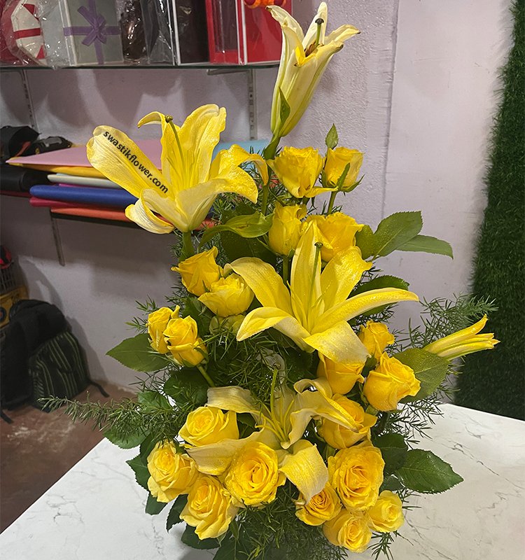 Joyful Vibes Yellow Roses & Yellow Lilly's