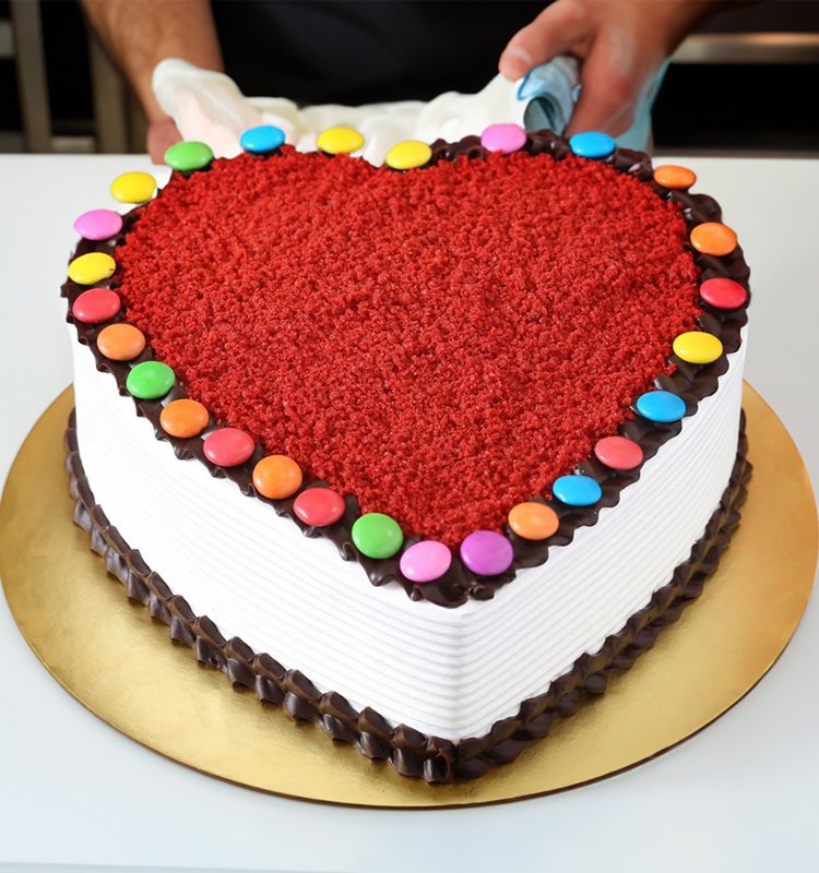 Experience a delightful twist with our Red Velvet Gems Cake! Each slice is a harmonious blend of classic red velvet sponge cake infused with hints of cocoa, adorned with creamy vanilla cream cheese frosting, and embellished with colorful Gems chocolates. The rich flavors of red velvet complement the sweet crunch of Gems, creating a unique and indulgent treat that’s perfect for any celebration or simply to add a touch of fun to your dessert table.